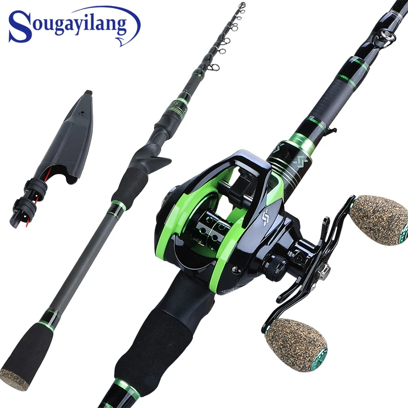 Cheap Sougayilang 1.8M 2.1M Casting Telescopic Fishing Rods with 7.2:1 Baitcasting Reel Combo for Travel